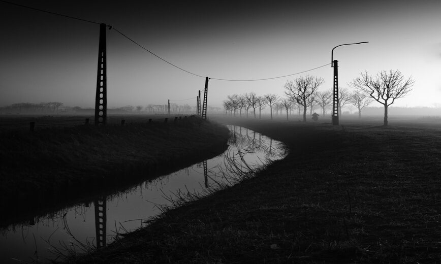 Landscape is an idea; we bring landscape into being. Being a landscape (and representing the landscape) is to simultaneously inhabit two worlds: the one before us and the one inside us. And when those two worlds collide and intermingle the result can often surprise. Our relationship with the landscape isn't purely one of the physical dependency, but it's also spiritual and emotional. We tend to think of landscapes as external settings for our life and architectural structures. However, there are no external settings for us to settle in, as our perceptions and awareness unavoidably imply an exchange; when we enter a space, the space enters us. Physical and geographical landscapes are also mindscapes. 'I am the space, where I am', Noël Arnaud, the poet, confesses, whereas Maurice Merleau-Ponty, the philosopher, reasons: 'The world is wholly inside, and I am wholly outside of myself'. Rainer Maria Rilke, the Bohemian-Austrian poet, uses the beautiful notion of Weltinnenraum. In my baren landscapes of isolation, solitude and mystery, the architectural structures project a sense of arrival, destination and comfort. In Martin Heidegger's words, they express our 'coming into the nearness of distance'. Houses are set in the landscape but the landscape is equally mirrored in architecture. The house expresses permanence (temporary and futile) while the landscape projects the changes of the seasons and hours of the day. The landscape embraces the house while the house caresses the landscape. When there is a person in my landscapes, it is more of an extra, a negligible dot in the big picture. Man is only a small, vulnerable element within the wide nature.