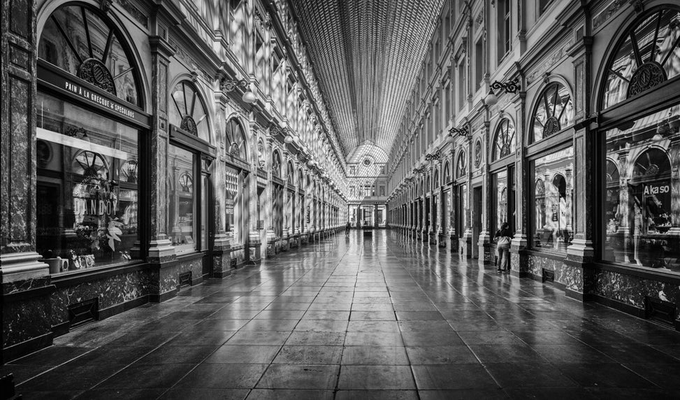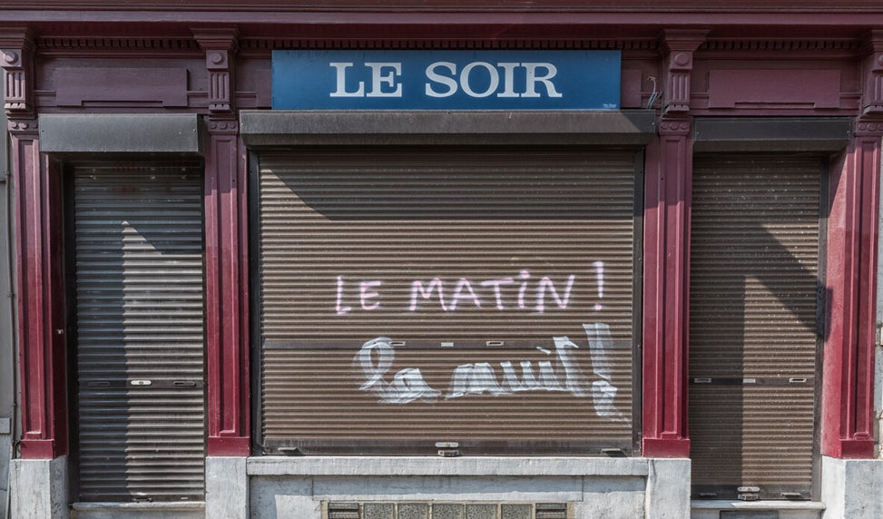 Apocalypse April 2020. Brussels in lockdown. Almost nobody on the streets in the center. Only the cleaner of the city or a lost couple seems to walk on the moon. A homeless person tries to socialize, but there is no one around him. He reads the newspaper on his own. Another homeless person is on the ground opposite the Stock Exchange in the center of Brussels. Who still listens to them? But there is hope. Trees are still growing (in the shadow). A really (sur)realistic view.